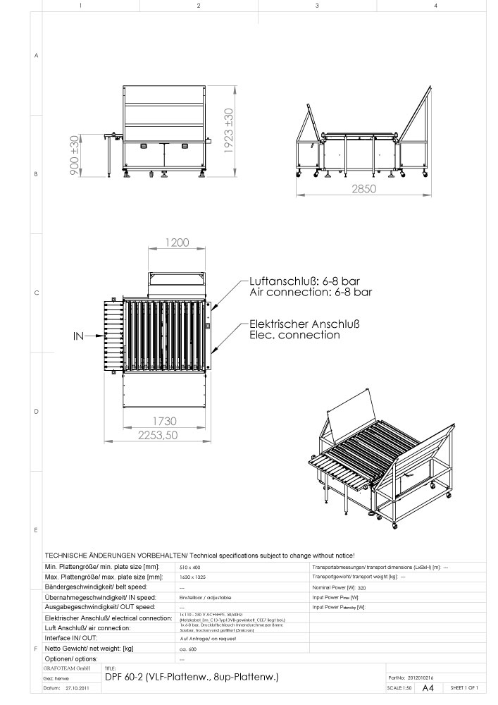 DPF 60-2/4/6, max. plate size 1700 x 1400 mm*