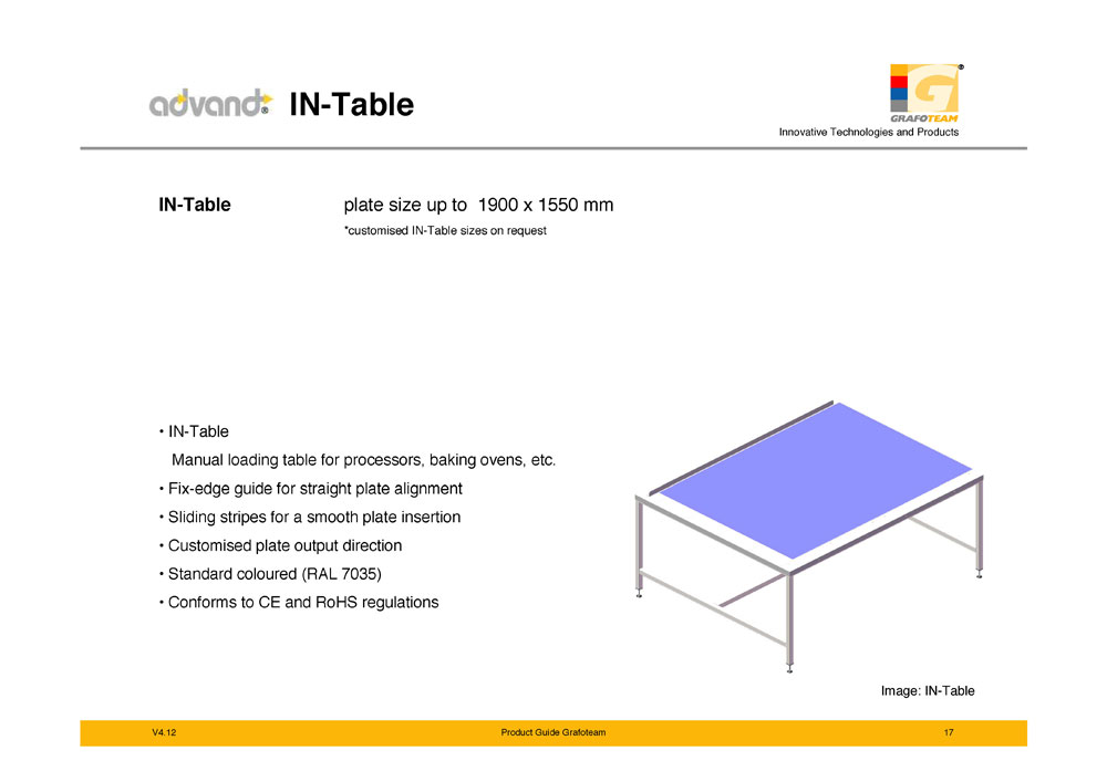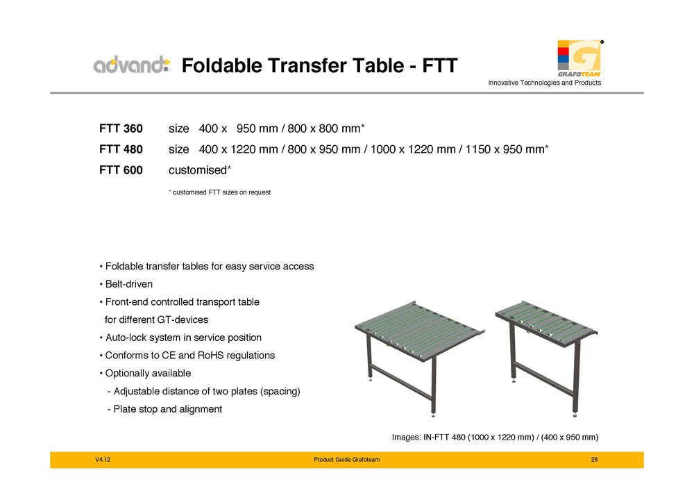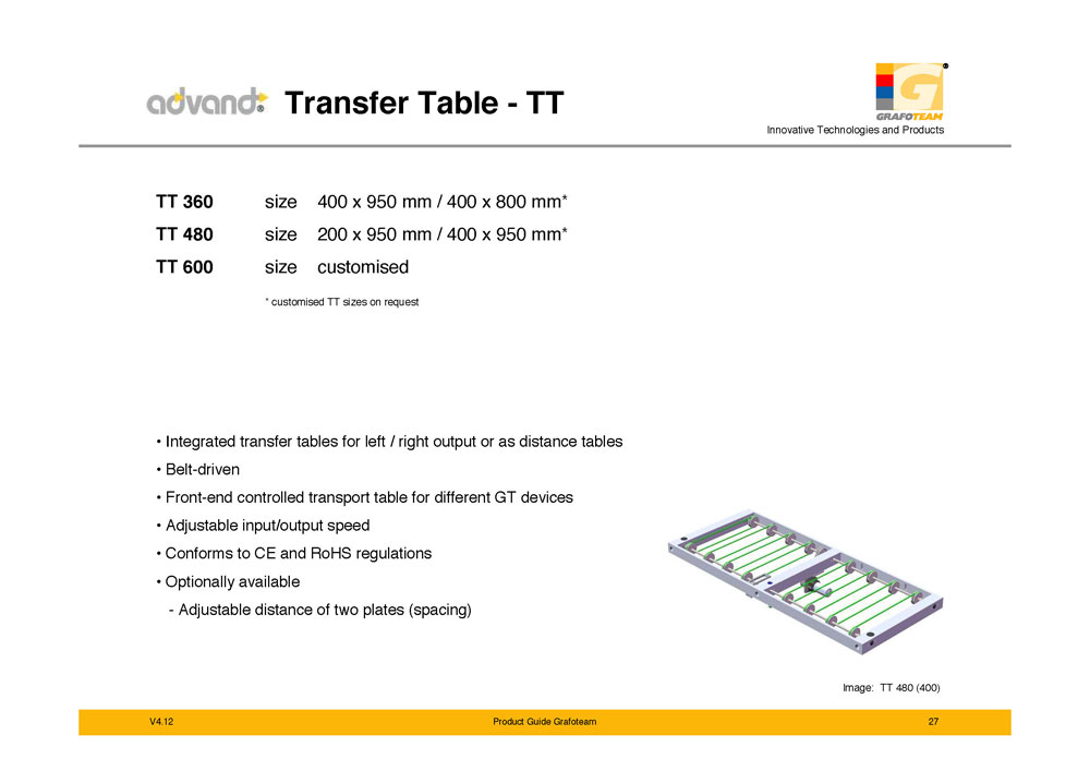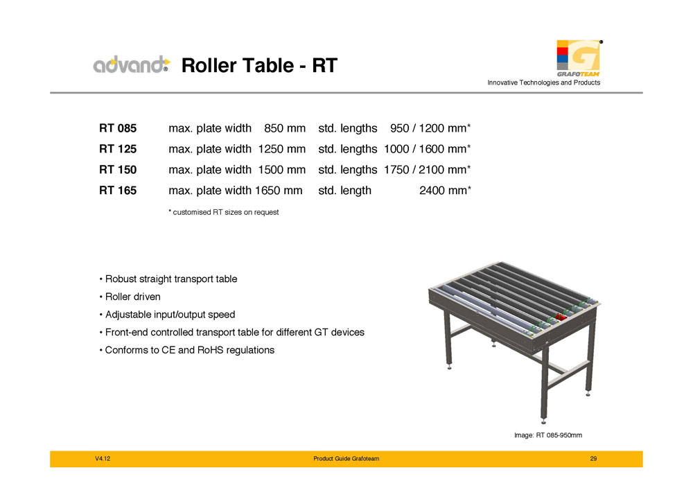 | RT 085, max. plate width 850 mm, std. lengths 950 / 1200 mm* |